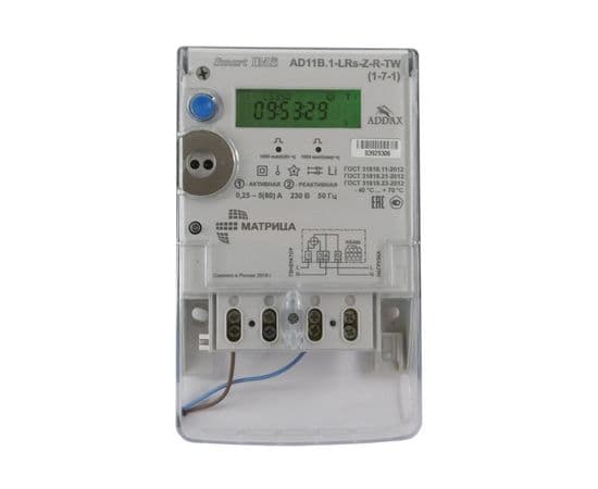 Однофазный счетчик электроэнергии AD11В.1-LRs-Z-R-TW (1-7-1) предназначен для измерения потребляемой электрической энергии (активной и реактивной, прямой и обратной), оценки текущей активной, реактивной, полной мощности, коэффициента мощности, частоты напряжения сети и ряда других параметров в однофазных сетях переменного тока напряжением 230 В, позволяет осуществлять централизованный сбор информации о потреблении электроэнергии по линиям 0,4 кВ или по двухпроводной линии RS-485. Прибор учета обладает единой неразборной прозрачной крышкой корпуса и крышкой клеммника.