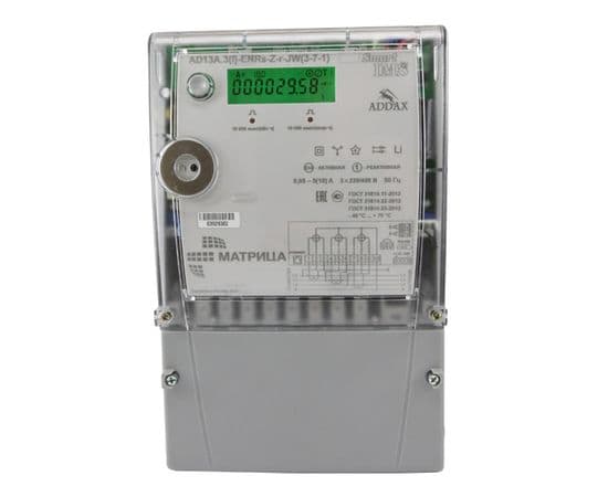Трехфазный счётчик электрической энергии AD13A.3(I)-ENRs-Z-r-JW (3-7-1) предназначен для измерения потребляемой электрической энергии (активной и реактивной, прямой и обратной), оценки текущей активной, реактивной, полной мощности, коэффициента мощности, частоты напряжения и ряда других параметров в трехфазных сетях переменного тока напряжением 3х230/400 В. Счётчик позволяет осуществлять централизованный сбор информации по двухпроводной линии RS-485. Счетчик подключается, либо к интерфейсу RS-485 УСПД RTR8А, либо к интерфейсу RS-485 счетчика, к которому подключен коммуникационный GPRS - RS-485 модуль. Таким образом, к одному коммуникационному модулю может быть подключено до 256 приборов учета. Альтернативный канал связи организуется c помощью технологии пакетной передачи данных по сети Ethernet.