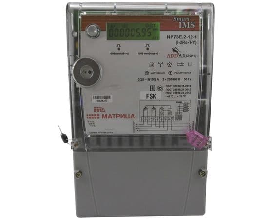 Трёхфазный счётчик электрической энергии прямого включения NP73E.2-12-1 (I-2Rs-T-Y) (2-29-1) предназначен для измерения потребляемой электрической энергии (активной и реактивной, прямой и обратной), оценки текущей активной, реактивной, полной мощности в трёхфазных сетях переменного тока напряжением 3x230/400 В. Счетчик позволяет осуществлять централизованный сбор информации о потреблении электроэнергии по линиям 0,4 кВ.